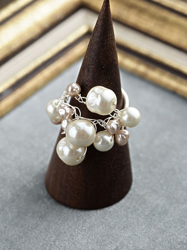 様々な大きさのパールを使って鎖編みで素敵なリングを作ります。初めてワイヤーをかぎ針で編む方にも簡単に進められます。